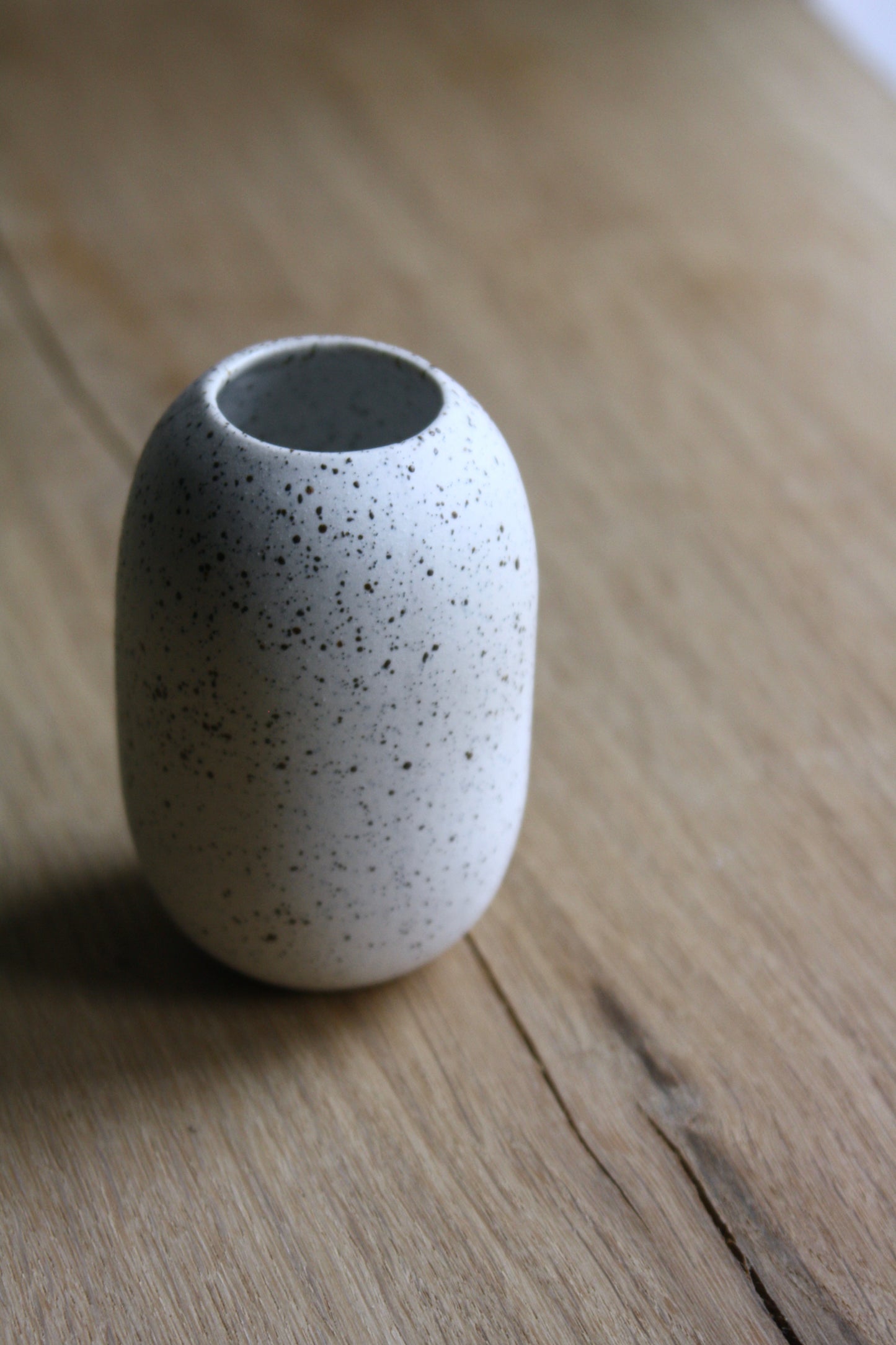 The vase is carefully slip casted in stoneware. After the first firing it is glazed on the inside and sand washed, which makes it smooth and soft to the touch.